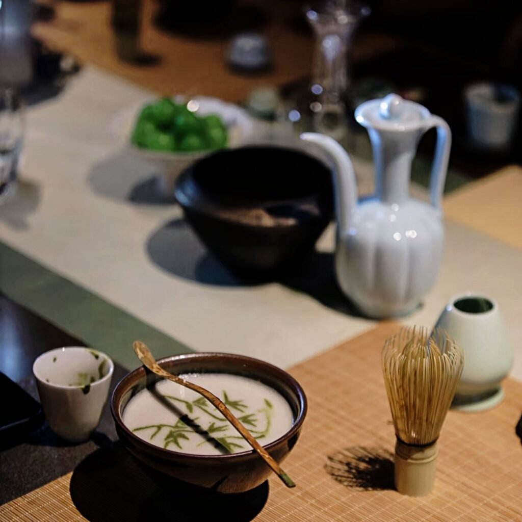 In this hands-on experience, powdered tea is whisked into a fine foam and used